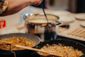 Õpitoas valmivad Natalja retsepti järgi nii taigen kui hiljem sellest nii lahtine pirukas kui väikesed sibulapirukad. Samal ajal tehakse valmis ka vanausuliste keedusuhkur. Juuakse teed ja nauditakse oma töö tulemust. Retseptid saab ka koju kaasa.